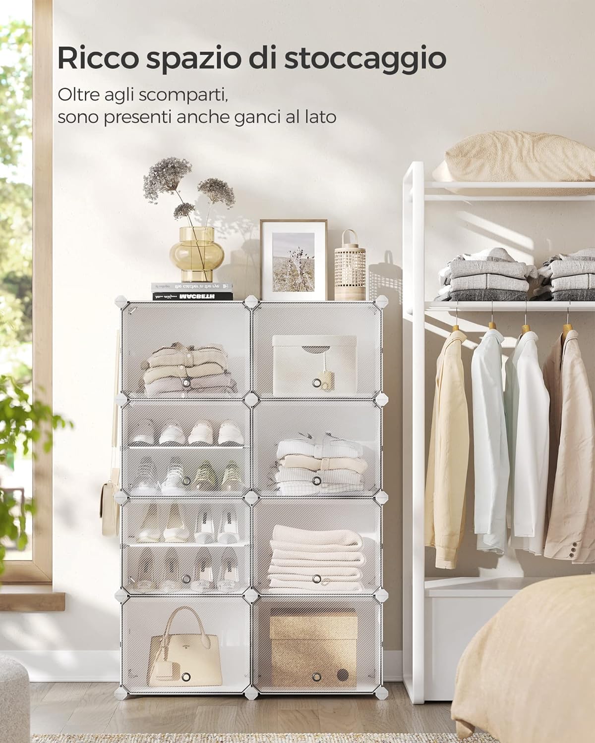 Scarpiera a 8 Scomparti, Scaffale Portaoggetti Modulare, Scomparto di 30 x 40 x 30 cm, con Sportello, Telaio in Acciaio, Pannelli di Plastica, Bianco